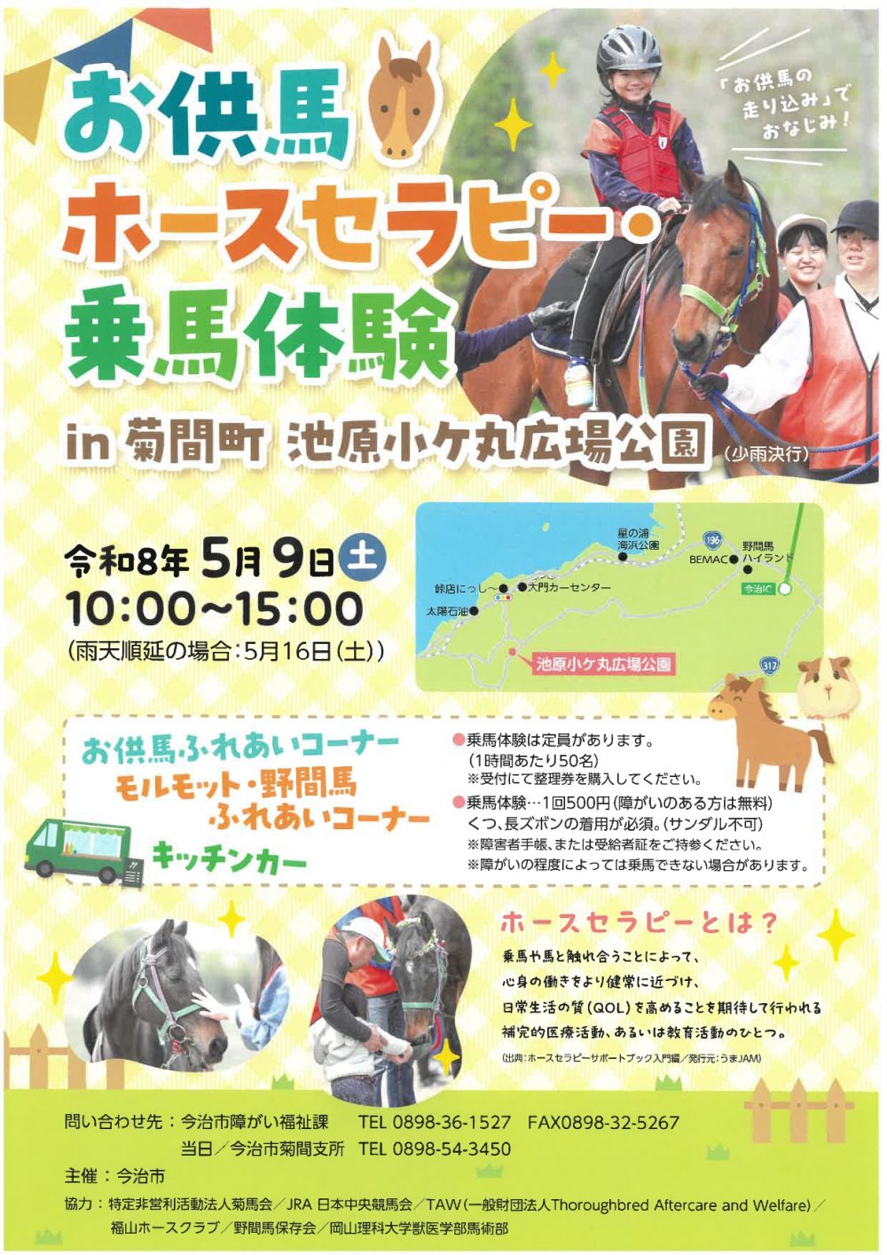 お馬さんに乗ったり、かわいいモルモットと仲良くなったりして、初夏の楽しい一日を過ごしませんか?