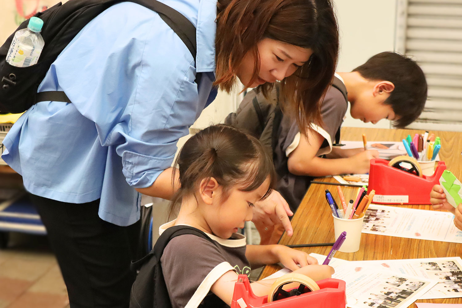 学生スタッフのお姉さんたちが「上手だね!」と声をかけてくれて、こどもたちもうれしそう。