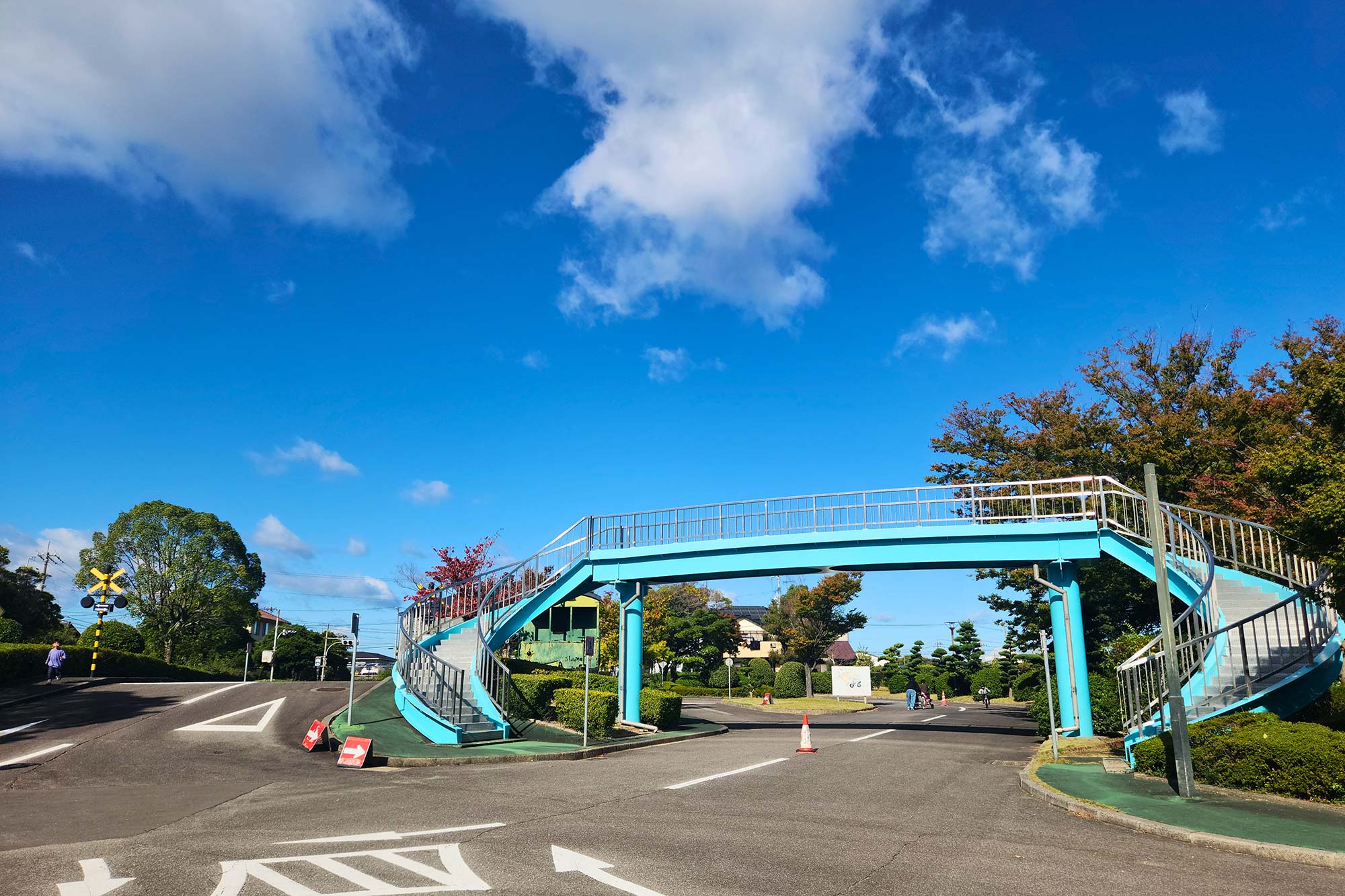 今治市古国分にある今治交通公園は、「交通ルールを体験しながら学べるエリア」と「広い遊具エリア」がひとつになった、珍しいタイプの公園です。
